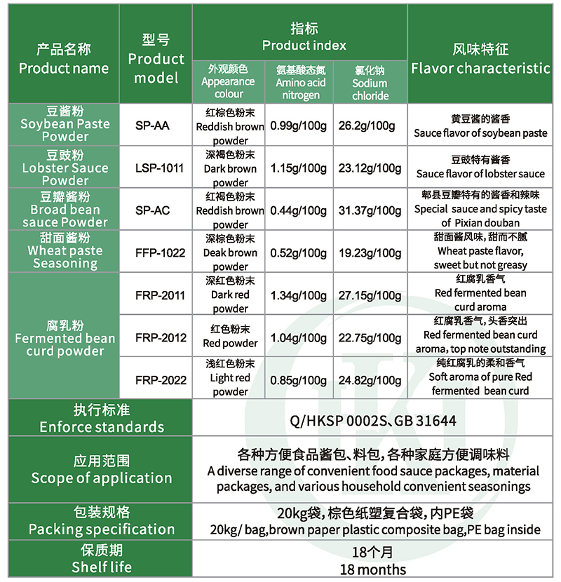 發(fā)酵類醬味粉以傳統(tǒng)北方豆瓣醬、川味豆豉、保定甜面醬、北方紅腐乳、郫縣豆瓣為主要原料,經(jīng)過調(diào)配、微膠囊包埋、噴霧干燥或真空干燥而成。